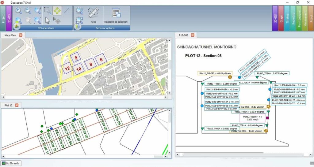 Sixense has so far been contracted on 7 plots and more than 10 packages, and is currentlty the largest contractor involved in carrying out the instrumentation and automatic monitoring activities, providing Main Contractors, various Consultants and Major Stakeholders such as RTA (“Roads & Maintenance Department” & “Rail Agency” divisions), Serco, Parsons, COWI, DAR CE, AE7 with real-time data for the Shindagha Tunnel and Green Metro Line, and daily monitoring data for the excavations.