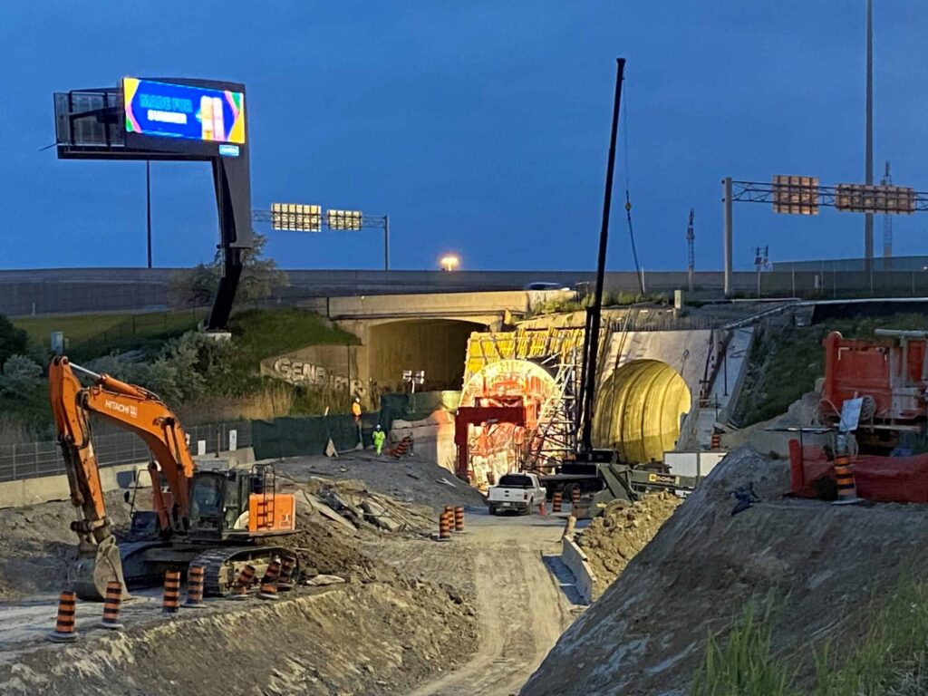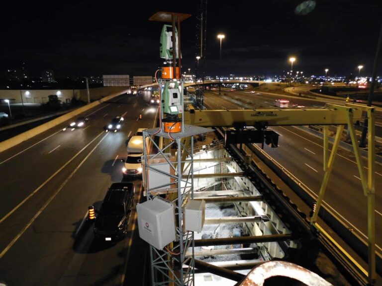 Sixense was retained by the Toronto Tunnel Partners (TTP) to perform environmental, geotechnical, and structural monitoring on Highway 401 & 409, North America’s busiest highway corridor, with 21 live lanes throughout the construction of two new twin tunnels underneath the highways. The new tunnels would be approximately 180m long and constructed via Sequential Excavation Method (SEM) with minimal overburden (1.5m).