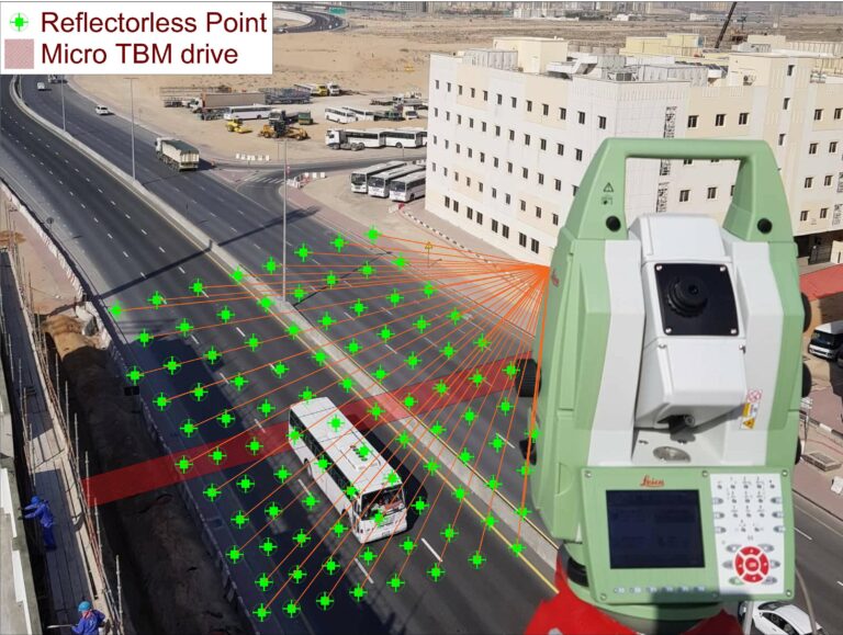 Sixense innovative solution consisted of installing a total station on the top of a nearby building, from where the whole influence area of the TBM could be seen, and proceed with reflectorless monitoring activities to follow the road settlements.