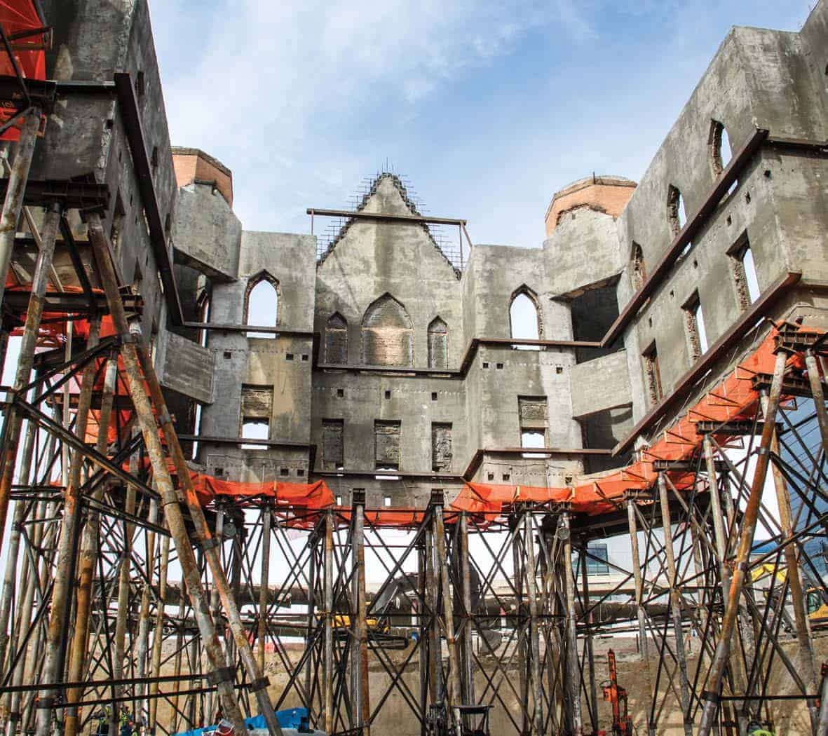 In December 2010, a fire destroyed the inside of the historic Provo Tabernacle Temple in Provo, Utah. Sixteen months after the fire, The Church of Jesus Christ of Latter-Day Saints made the decision to rebuild the structure while maintaining the integrity of the building’s original facade. The fire destroyed the inside and the roof of the Provo Temple, but left the walls intact. Therefore, it was decided to keep the original walls and add rooms below the building.