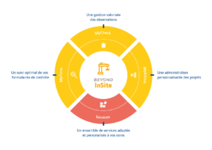 Du suivi d’observations et de réserves (MyCheck de Beyond InSite) à la gestion de documentation (Microsoft SharePoint) en passant par le suivi de la qualité (MyForm de Beyond InSite) et la communication (WhatsApp), ces solutions, comme Beyond InSite, optimisent la communication, la planification, le suivi et la coordination des opérations sur un chantier : elles deviennent donc primordiales et au cœur même des projets.