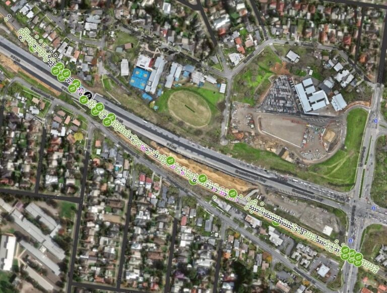 Construction near the live Hurstbridge Rail Line required monitoring solutions to ensure rail stability and minimise disruption. Sixense was engaged to provide real-time monitoring under demanding conditions, including strict timelines, limited site access, and evolving project requirements. Traditional survey methods were not practical, making innovative solutions essential.