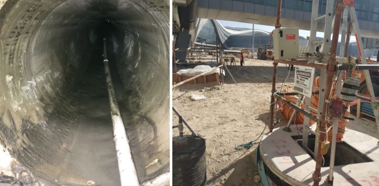Les activités d’injection, si elles ne sont pas méticuleusement contrôlées, peuvent entraîner le soulèvement, voire le tassement des structures adjacentes. La présence de conduites d’eaux pluviales stratégiques, ainsi que de plusieurs canalisations d’égouts, exigeait un niveau de contrôle et de précision que seule une surveillance en temps réel, à une densité d’instrumentation élevée, pouvait fournir pendant les activités d’injection. Cinq Shape Acceleration Array horizontaux ou 4DShape ont été mis en place, et un ingénieur Sixense sur place a procédé à la mise en service sur les lieux à surveiller, et aux réinstallations ultérieures, à d’autres endroits, au fur et à mesure que les activités d’injection progressaient sur le site. Les données ont été fournies en temps réel à toutes les parties prenantes du projet à l’aide de Geoscope, le logiciel GIS de Sixense basé sur le Web.