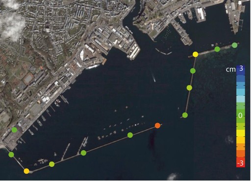 Lors de l’exécution de divers travaux, Sixense a assuré la surveillance préventive des digues via une méthode d’auscultation par interférométrie radar satellitaire (Atlas). Ce suivi a nécessité l’installation de coins réflecteurs artificiels.