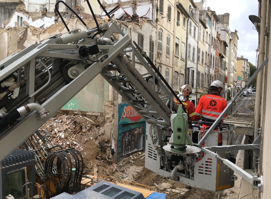 Afin de permettre au collège d’experts et marins pompiers de travailler en toute sécurité, la Ville de Marseille contacte Sixense en urgence pour mettre en place un système d’auscultation des avoisinants des immeubles effondrés.
