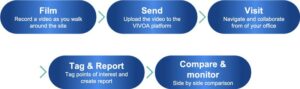 VIVOA turns real-world sites into fully explorable digital environments that teams can inspect, document and compare from anywhere. It is designed for multiple use cases such as dilapidation surveys, safety walks, construction progression tracking, insurance documentation, client site visits.